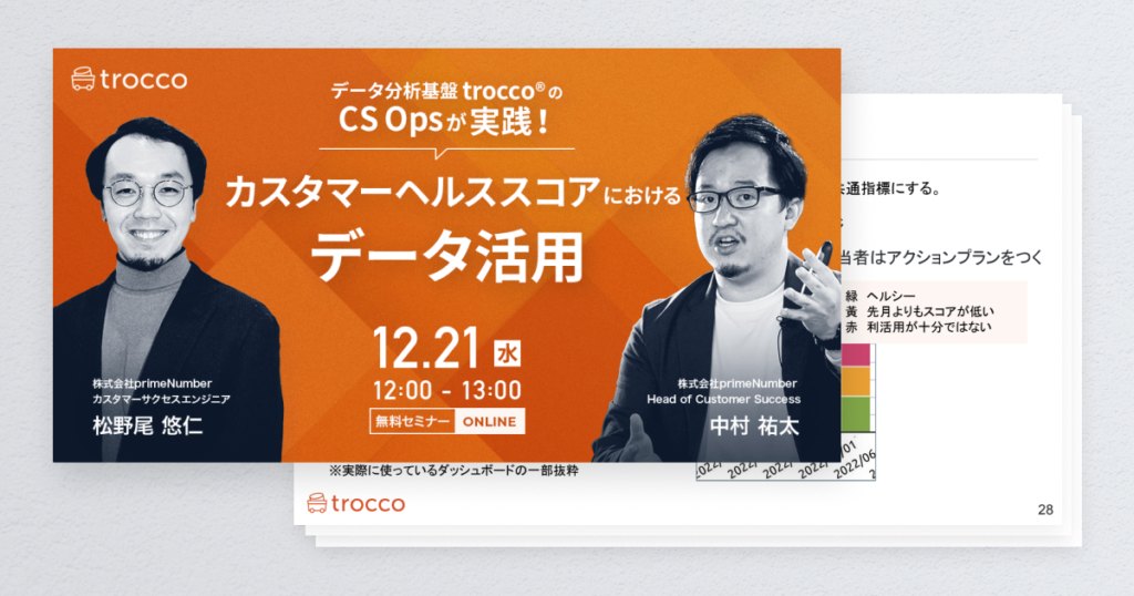 ※2022年12月21日に開催された「データ分析基盤TROCCO®のCS Opsが実践!カスタマーヘルススコアにおけるデータ活用」」イベントの登壇資料となります。